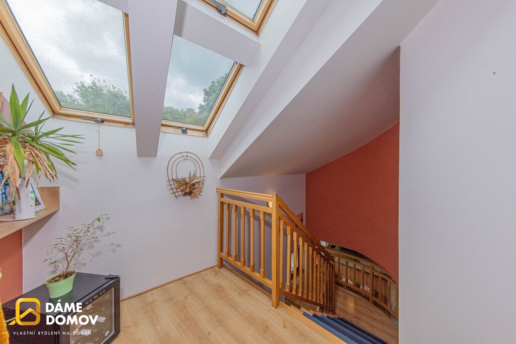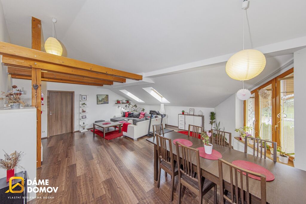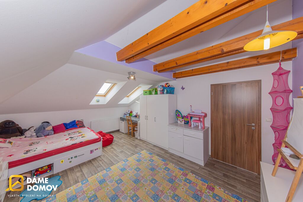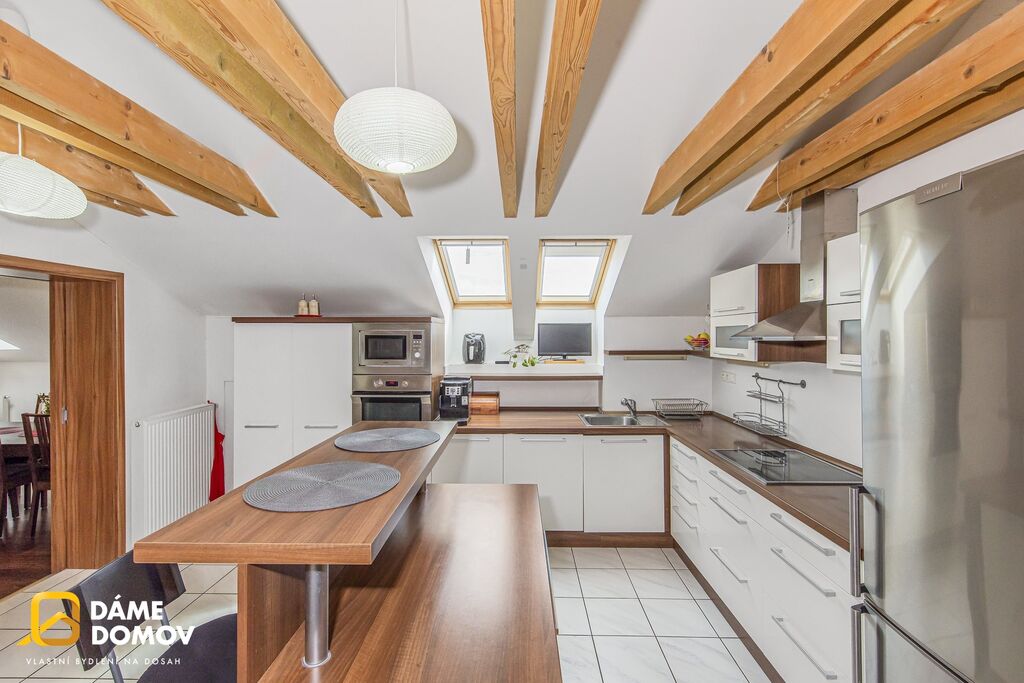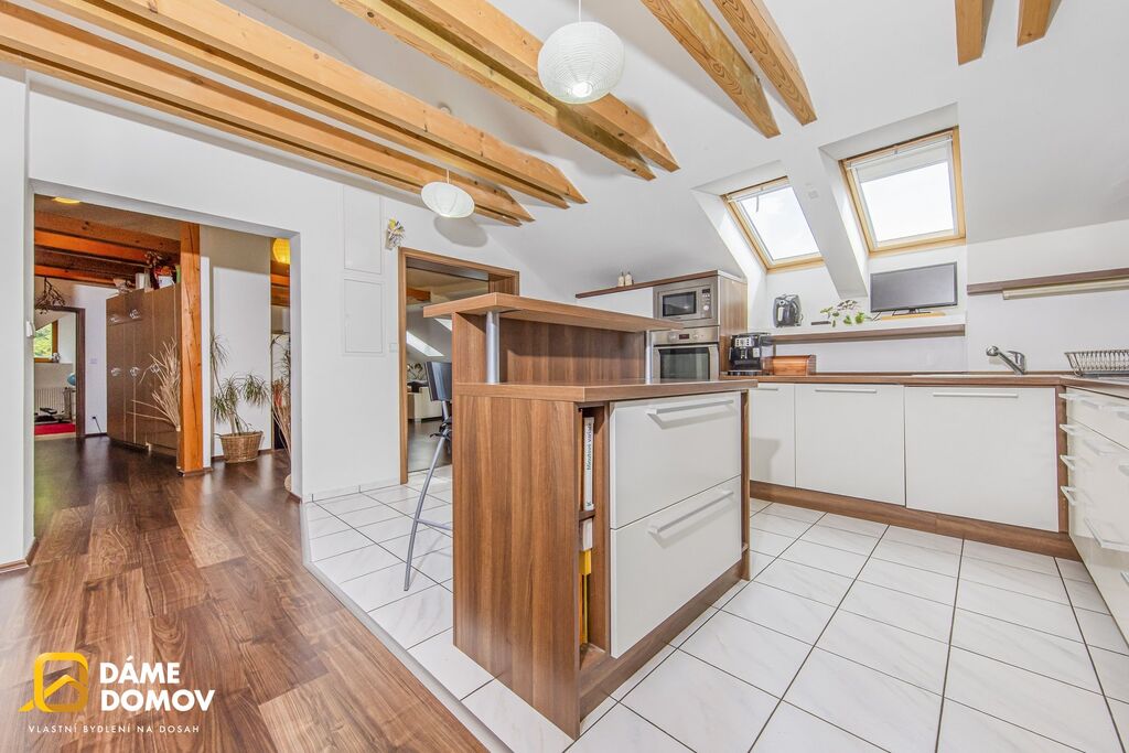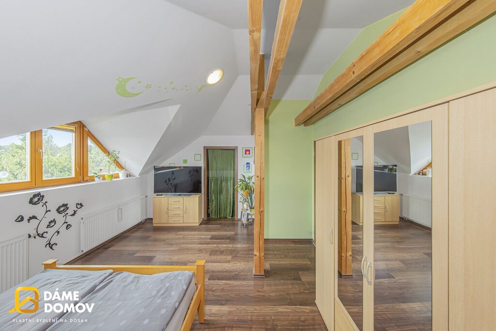 Ve 2. patře se nachází podkrovní byt 4+1 – kuchyň s ostrůvkem, velký obývací pokoj, tři ložnice, šatna, technická místnost a koupelna se sprchou, vanou a WC. Tento byt má samostatný elektroměr a hygienické zázemí.