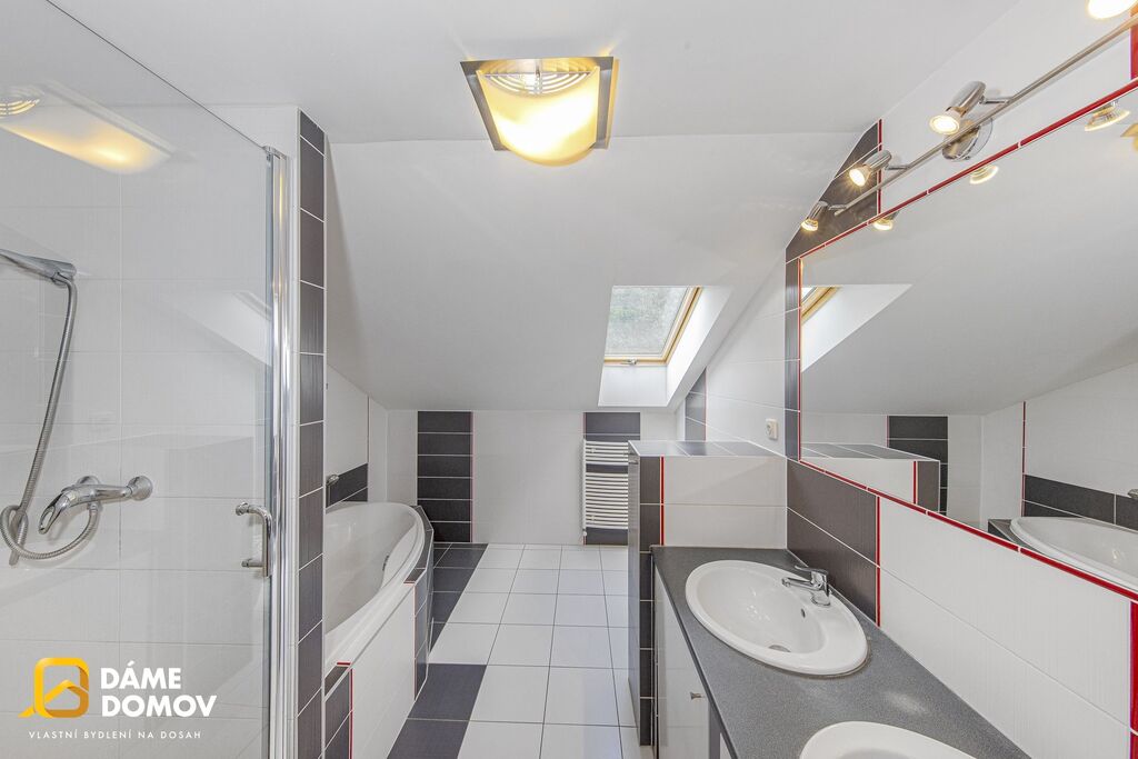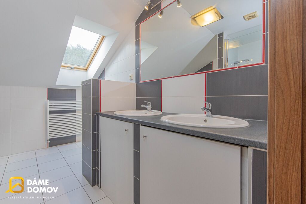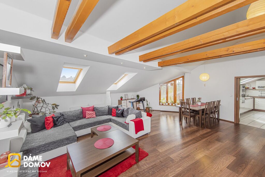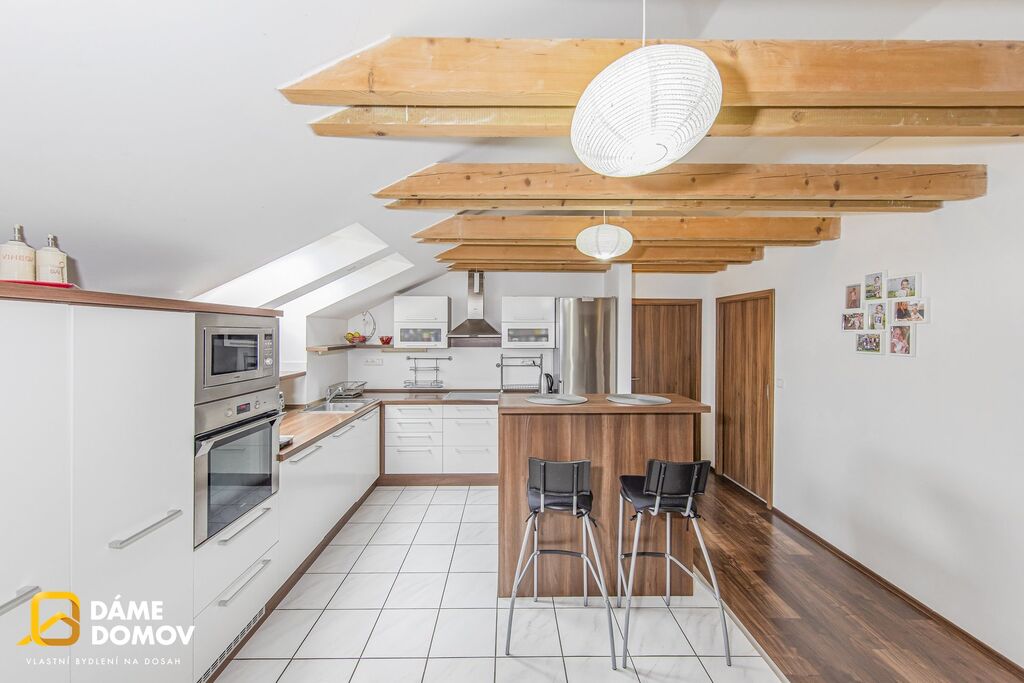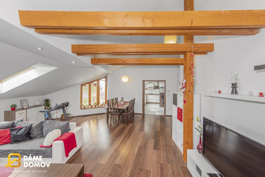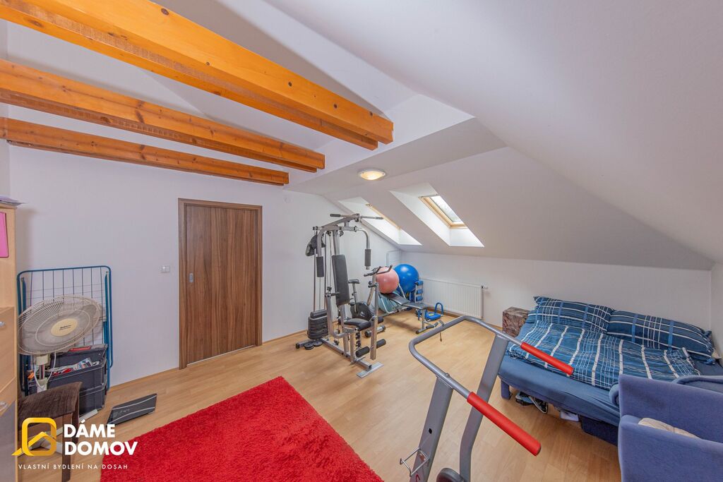 Ve 2. patře se nachází podkrovní byt 4+1 – kuchyň s ostrůvkem, velký obývací pokoj, tři ložnice, šatna, technická místnost a koupelna se sprchou, vanou a WC. Tento byt má samostatný elektroměr a hygienické zázemí.