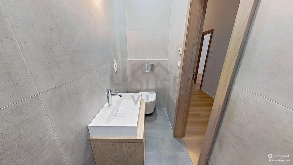 Na podlahách je kvalitní vinylová podlaha, v koupelnách designová keramická dlažba s vyhřívaním