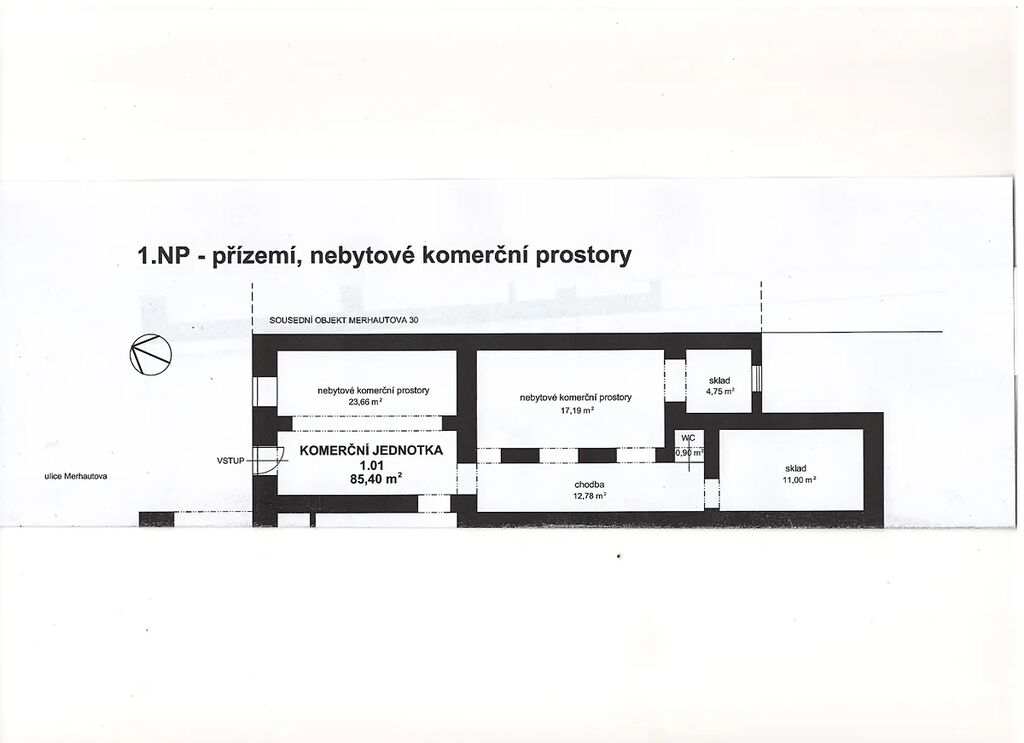 Prodej obchodního prostoru, Brno, Merhautova, 85 m2