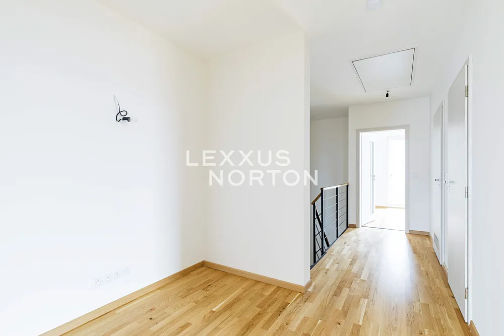 Dům s dispozicí 5+kk o celkové ploše 156,56 m² nabízí čtyři ložnice, tři koupelny, prostorný obývací pokoj s kuchyňským koutem, technickou místnost a dvě chodby. K domu náleží vlastní garáž, sedlová střecha s půdou a pozemek o velikosti 463 m².