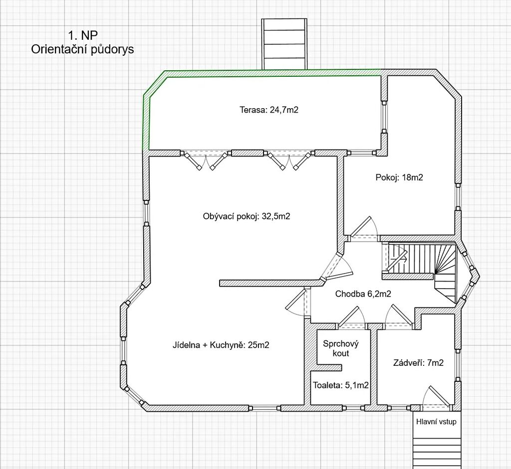 1. podlaží – 93 m² + terasa 25 m²