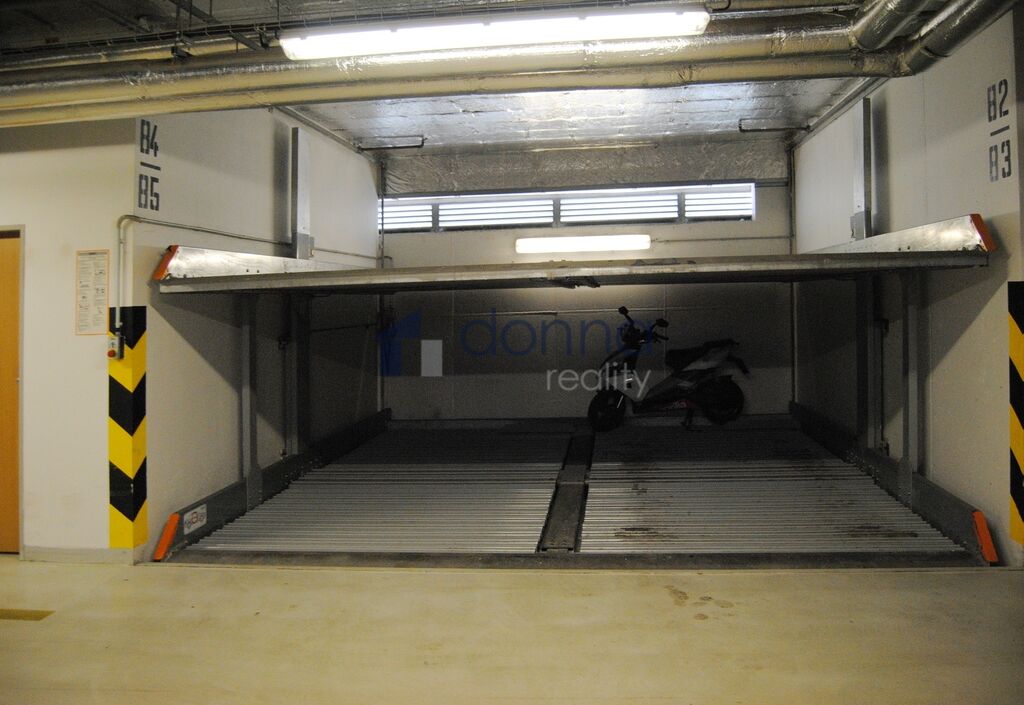 Nabízíme pronájem zakladačového garážového stání, horní místo, v domě v ulici Přípotoční, Praha 10 - Vršovice. Garážové stání 15m2, vjezd do garáží na čip. Cena za pronájem 2.500,-Kč/měsíčně, volné od 1.12.2025. Foto je ilustrační.