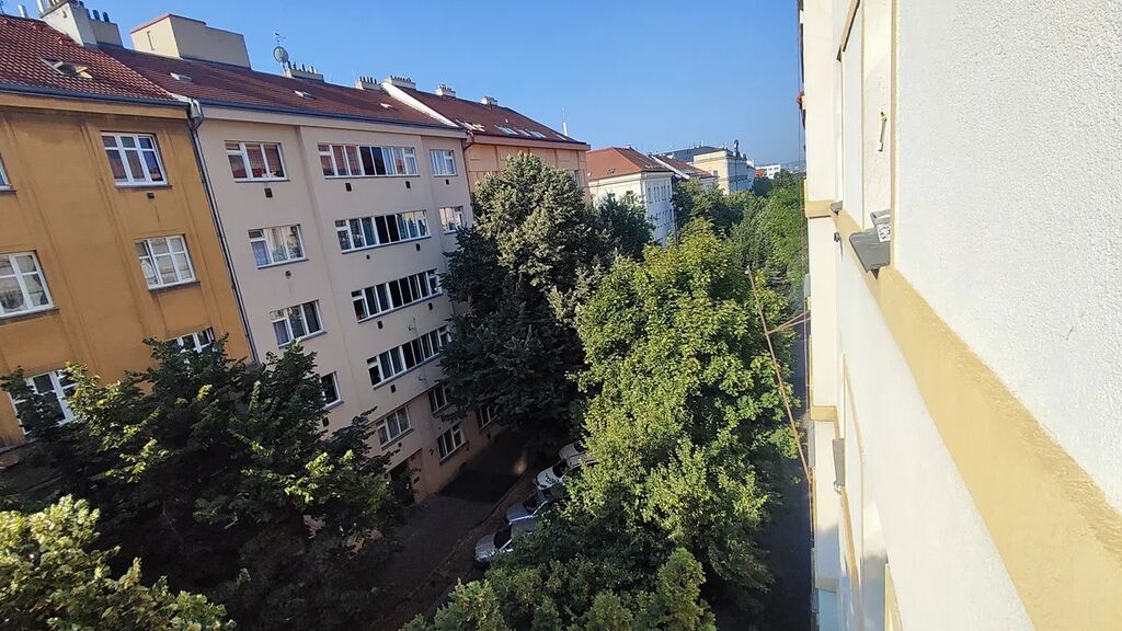 Plusem bydlení je orientace oken do klidné ulice s vzrostlými stromy a příjemný pohled