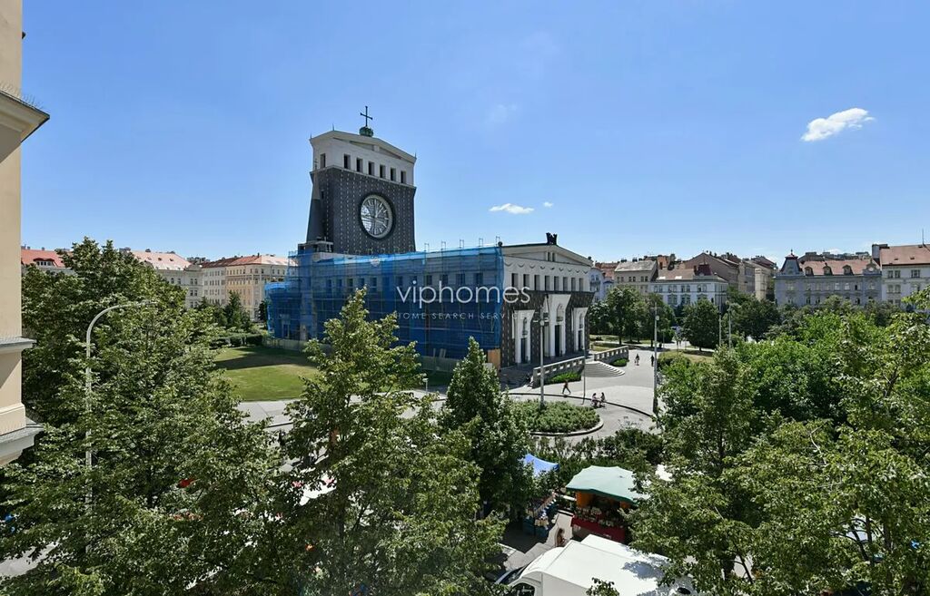 Zařízený, klimatizovaný byt ve 4. patře kompletně zrekonstruované činžovní budovy v secesním stylu, v jedné z nejžádanějších částí Prahy, přímo na Náměstí Jiřího z Poděbrad. Budete okouzleni výhledem na avantgardní architektonickou stavbu kostela Nejsvětějšího srdce Páně, osobité dílo slovinského architekta Jože Plečnika a celé náměstí s typickou energií a atmosférou Vinohrad. Najdete zde jak významná nákupní centra např. Palác Flóra a Vinohradský pavilon pro Vaše pohodlné nákupy, tak i divadla (Divadlo na Vinohradech, Smetanovo divadlo), parky a vyhlídky, možnosti k posezení v četných restauracích a kavárnách. Farmářské trhy jsou neoddělitelnou součástí života v této čtvrti a svou atmosférou lákají obyvatele celé Prahy k pravidelné návštěvě. Díky výhodnému dopravnímu spojení se brzy dostanete do samotného centra města, ale i za jeho hranice, a to jak automobilem tak MHD. Stanice metra A .