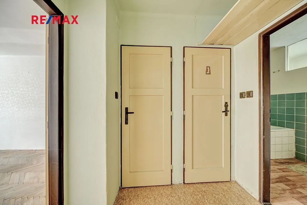 Z chodby je vchod na WC a do komory. Nachází se zde věšáková stěna a vestavěná skříň.