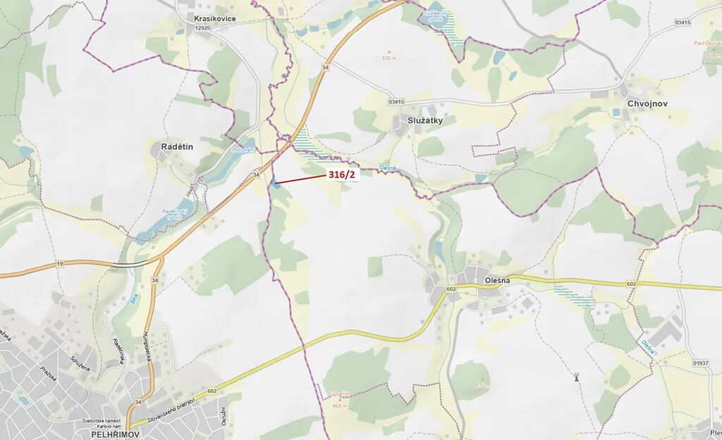 Trvalý travní porost o výměře 3211 m2, parcelní číslo 316/2, podíl 1/1, katastrální území Olešná u Pelhřimova, obec Olešná, obec s rozšířenou působností Pelhřimov, okres Pelhřimov, Kraj Vysočina.