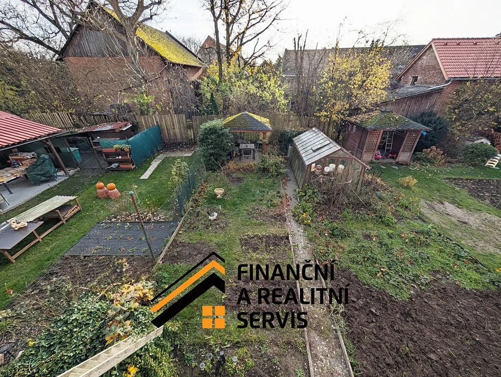 Dřevěná garáž umístěná na společném pozemku – velký benefit v lokalitě.