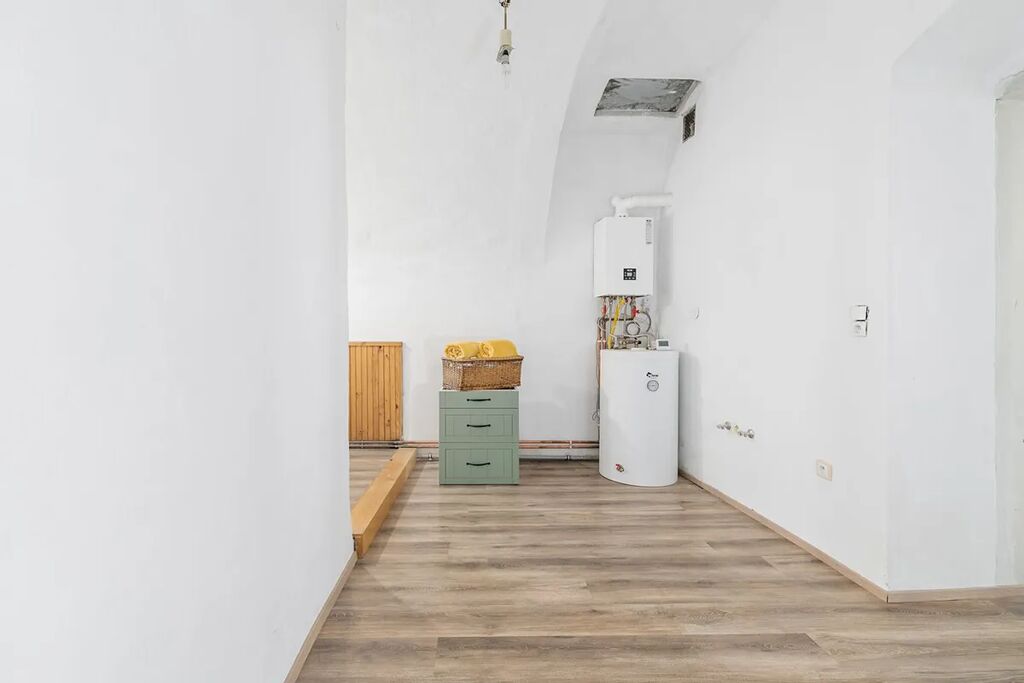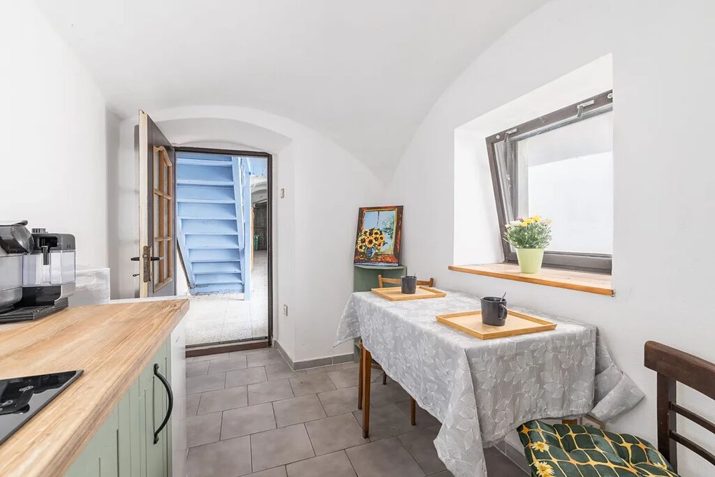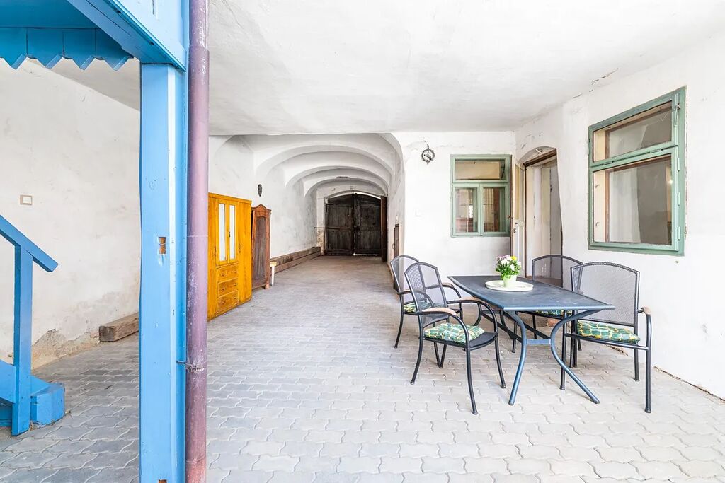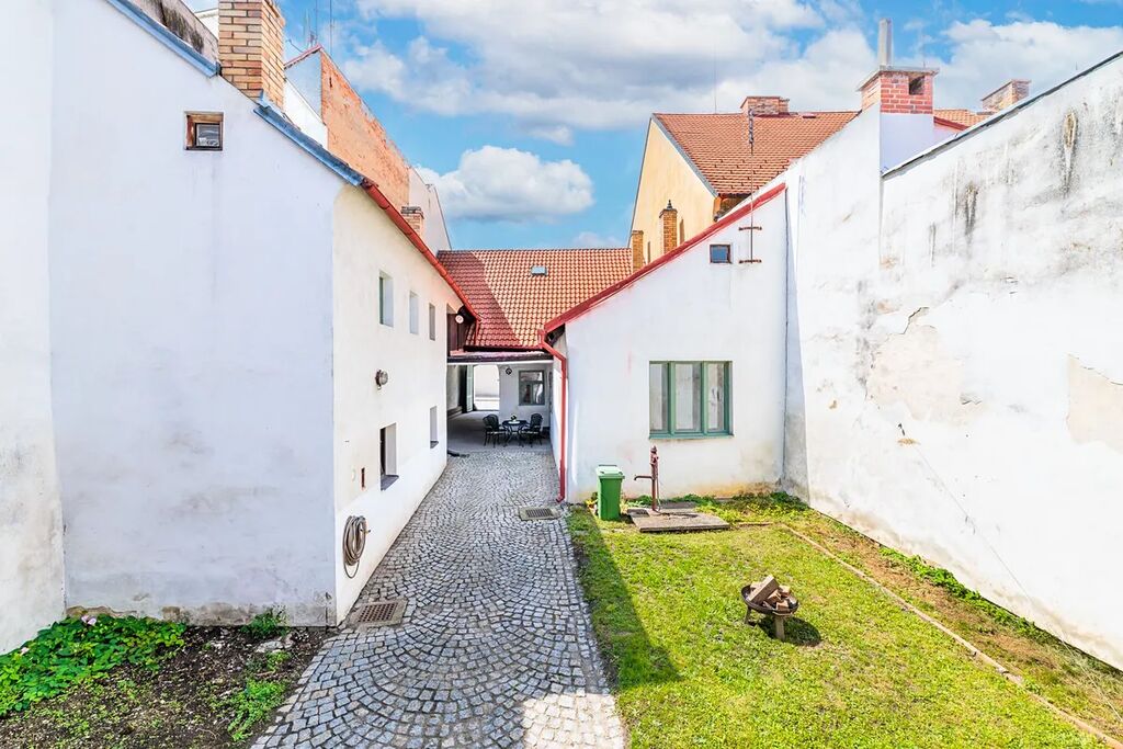 Dominantou městského domu, který zvenku působí spíš nenápadně, jsou vstupní vrata, které přímo vybízejí k tomu, aby byly otevřené…Nabídnou vstup pro návštěvu turistů či zákazníků obchůdku nebo kavárny? Potřebujete pro svou práci ateliér, dílnu, skladovací prostory? Dům nabízí skvělou příležitost pro sloučení bydlení s podnikáním.