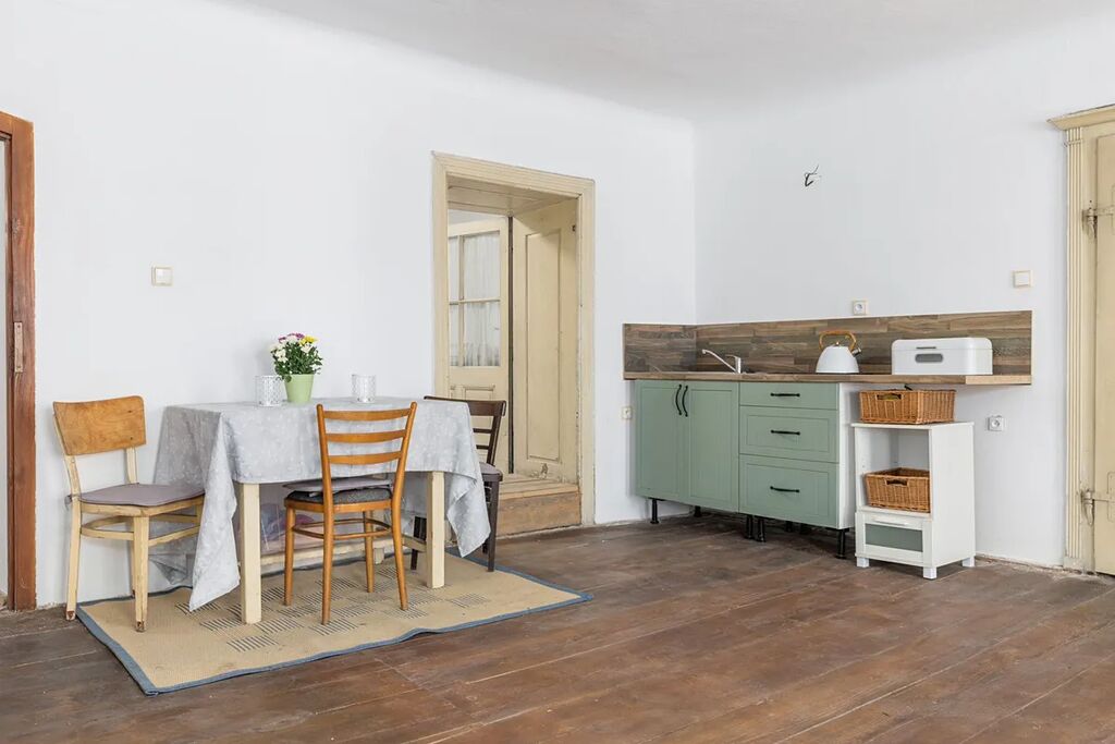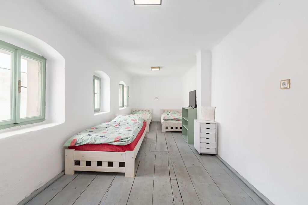 Prostory, které neprošly rekonstrukcí, si už sami můžete přizpůsobit svým představám a nápadům. Využitím půdního prostoru a zadní části domu ( stodola ) získáte další možnost pro ubytovací kapacity či komfortní rodinné bydlení. V tuto chvíli dispozice nabízí 2 bytové jednotky ( jedna s pokojem v patře ) se třemi koupelnami. Tím to tady ale zdaleka nekončí.