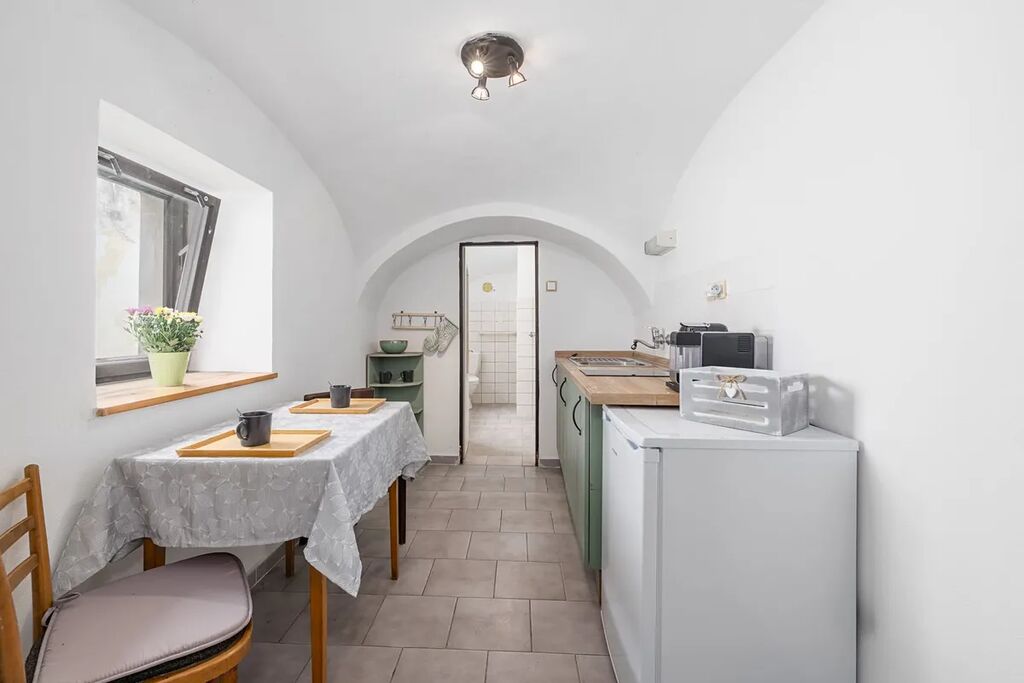 Jak využít sklep o rozloze cca 40 m²? Prostor, který se stane úžasnou vinotékou nebo jen místem, kde uskladníte zásoby. Chcete vlastní studnu? I tu tady najdete, má hloubku 11 m a je umístěna na zatravněné části pozemku.