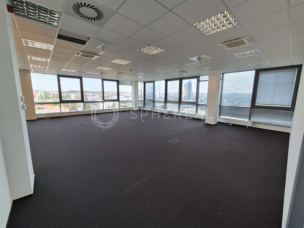 Kanceláře o ploše přibližně 330 m² se nachází v 7. NP budovy B s výhledem na jižní část Brna. Vaše firma může využít buď současnou dispozici open space doplněnou zasedacími místnostmi, kuchyňkou a místností pro server nebo prostor rozdělit na menší části pro práci oddělených týmů. V případě zájmu je možno se rozšířit do sousedních prostor nebo si pronajmout jen menší část nabízených prostor.