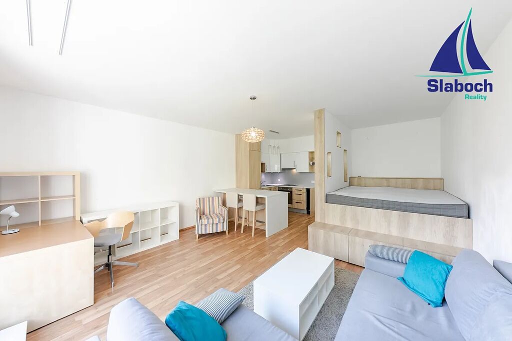 Bytová jednotka se nachází v přízemí (1NP) pětipatrového cihlového domu z roku 2012, byt je ve skvělém stavu, prostorný obývací pokoj (33m2) s kuchyňským koutem včetně moderní kuchyňské linky se spotřebiči, předsíň s úložným prostorem, koupelna s vanou, místem na pračku a toaletou, vstup na skvělou předzahrádku (16m2) s terasou (10m2) je z obývacího pokoje, byt je orientován na východ, do klidného vnitrobloku se spoustou zeleně.
