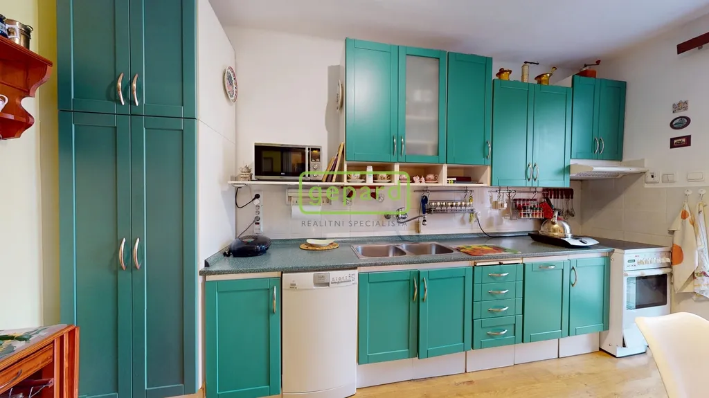 Jedná se o řadový rodinný dům o velikosti cca 150 m2 na pozemku o celkové ploše 361 m2. V přízemí domu projdeme od vstupních dveří chodbou do obývacího pokoje a z něho dále do kuchyně, ze které je vstup plastovými dveřmi na zahradu. S chodby jsou postupně vstupy do menší koupelny s WC, do komory ve které se nachází plynový kotel, který je rok starý a dále přímo s chodby je průchod do garáže, což oceníte hlavně při sychravém počasí. Po krásných dřevěných schodech se dostaneme do prvního patra, kde se nachází proti schodům dva prostorné pokoje, každý se vstupem do lodžie, dále projdeme chodbou do třetího pokoje s okny do ulice. V patře je též samostatné WC a veliká koupelna s rohovou vanou.