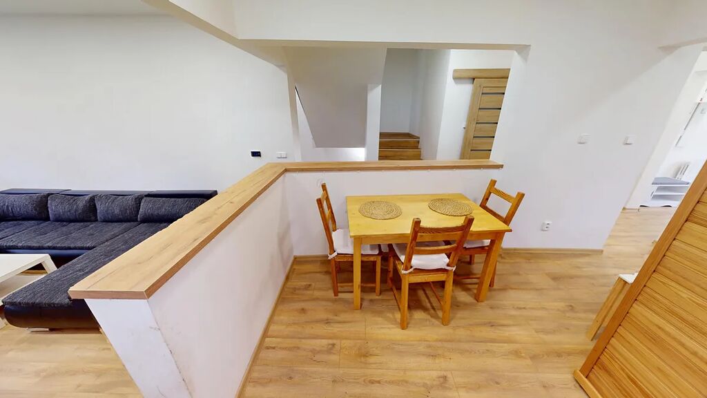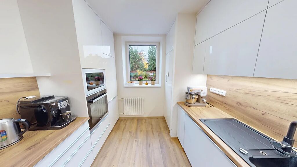 Nabízíme k prodeji řadový rodinný dům v klidné lokalitě nedaleko hlučínského jezera. Dům je po rekonstrukci z roku 2021, zkolaudován byl v roce 1996. Celková dispozice domu činí 5+1, dvě patra, balkon, zahrada s terasou, venkovním posezením a s možností příjezdu až na zahradu. V suterénu domu se nachází kromě velké vybavené dílny také prádelna a technická místnost s novým plynovým kotlem a prostornou garáží. Další parkování je také zajištěno na pozemku před domem. Přízemí zahrnuje obývací pokoj s jídelnou, kuchyň, pracovnu a koupelnu s WC a sprchovým koutem. V prvním patře jsou umístěny 3 pokoje, z toho jeden pokoj s balkonem, koupelna s WC a další samostatné WC. Půda domu o velikosti 60 m2 je připravená k zabydlení pro jeden velký nebo dva malé pokoje. Vytápění domu a ohřev vody zajišťuje nový plynový kondenzační kotel, měsíční náklady za plyn činí 5500 Kč a za elektřinu 3500 Kč.