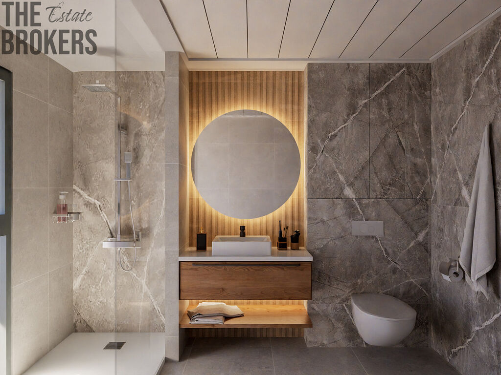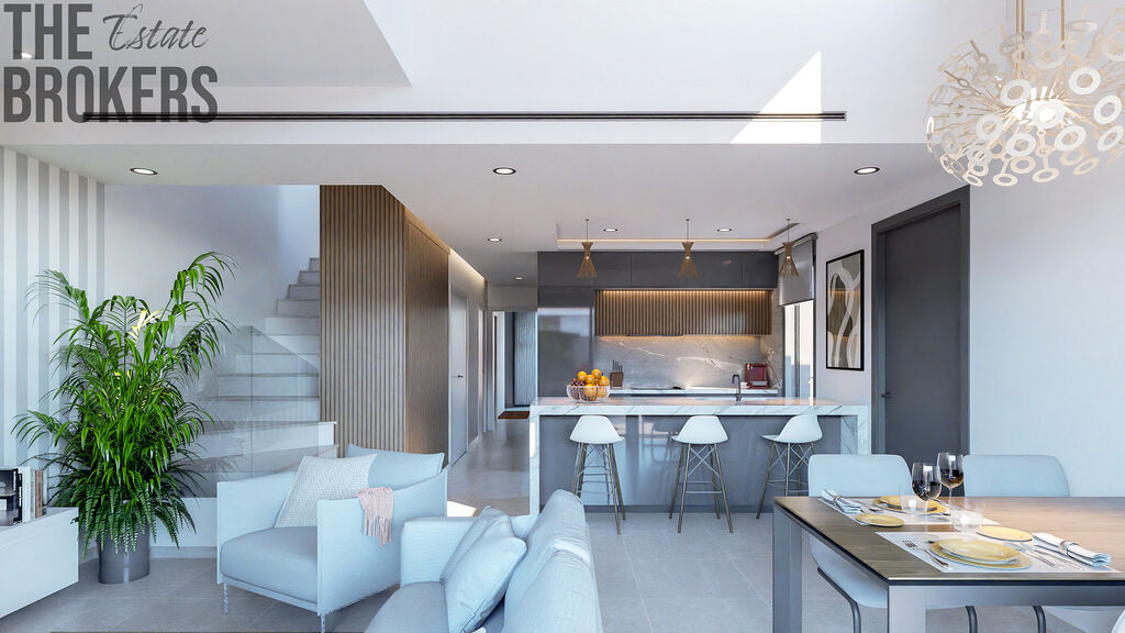 Každá vila má moderní, otevřený koncept rozložený do dvou podlaží a disponuje 3 ložnicemi a 3 koupelnami. Nemovitosti nabízí plně vybavenou kuchyň s ostrůvkem a prostorný obývací a jídelní pokoj. Z domu se dostanete do své soukromé zahrady o rozloze 71 m², na velkou terasu nebo na nádherné solárium s letní kuchyní.