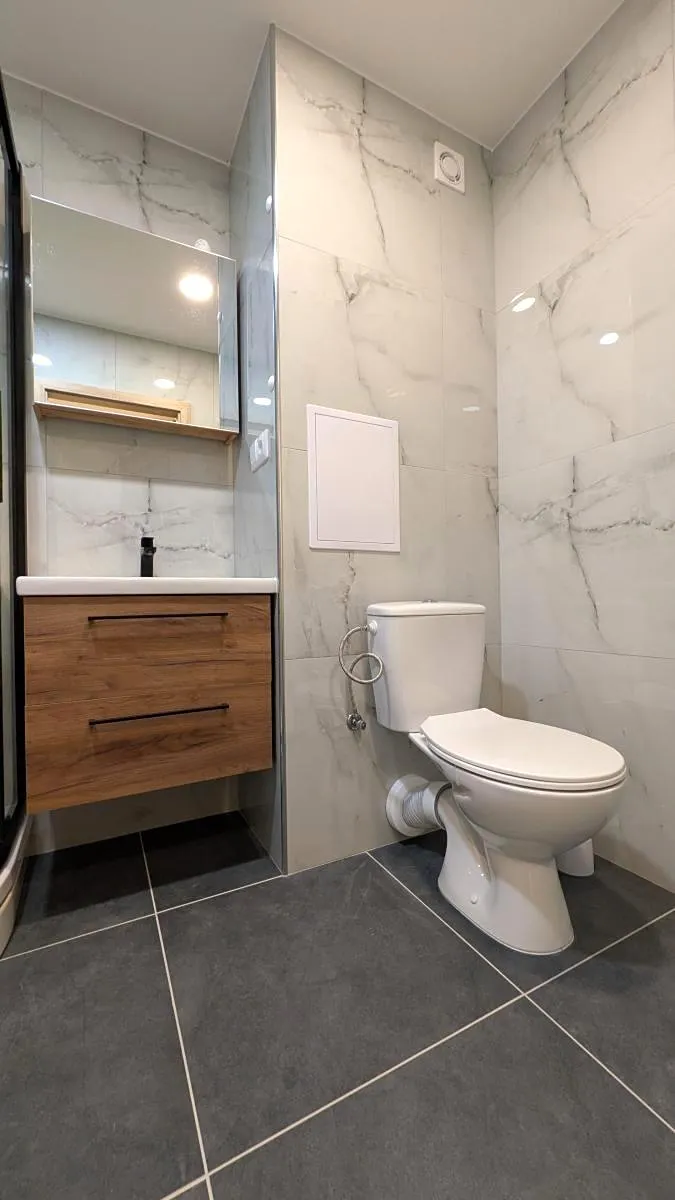 Nabízíme k pronájmu hezký byt 2+kk o výměře 41,68 m2 v ulici Šeříková 1117/22 v Mostě. Bytová jednotka se nachází v 2. patře panelového domu s výtahem. Byt prošel kompletní a velice zdařilou rekonstrukcí. Po celém bytě jsou nové podlahy a dveře s obložkami. V kuchyni je moderní kuchyňská linka s elektrickými kamny a indukční deskou s digestoří. V koupelně je sprchový kout, umyvadlová skříňka se zrcadlem a WC, přípojka na pračku je připravena. Vše je doladěno do posledního detailu. Byt je připraven k okamžitému nastěhování bez dalších nákladných investic. K bytu náleží sklep.