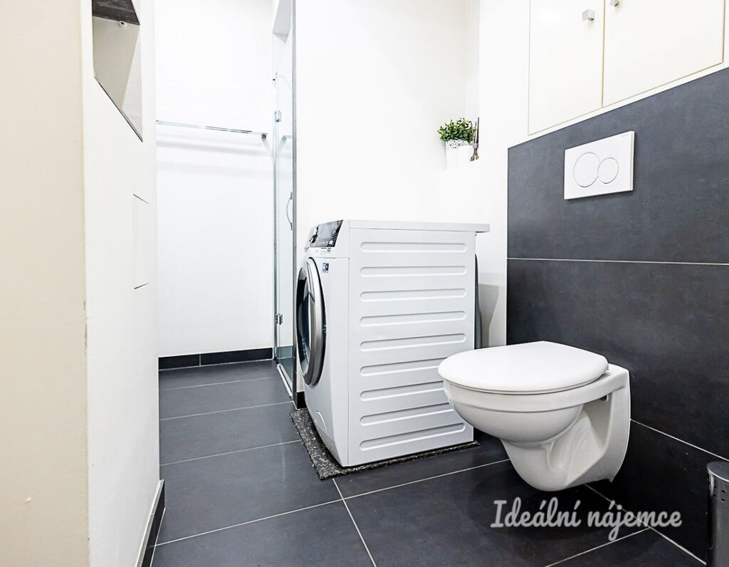 Byt se nabízí plně vybavený. Kuchyně disponuje lednicí s mrazákem, myčkou, kombinovaným sporákem, mikrovlnnou troubou a jídelním stolem s židlemi. V ložnici najdeme rozkládací pohovku, šatní skříň a křeslo. V koupelně je sprchový kout, umyvadlo, zrcadlo, koupelnová skříňka, pračka a WC. V předsíni je věšák, botník a zrcadlo.
