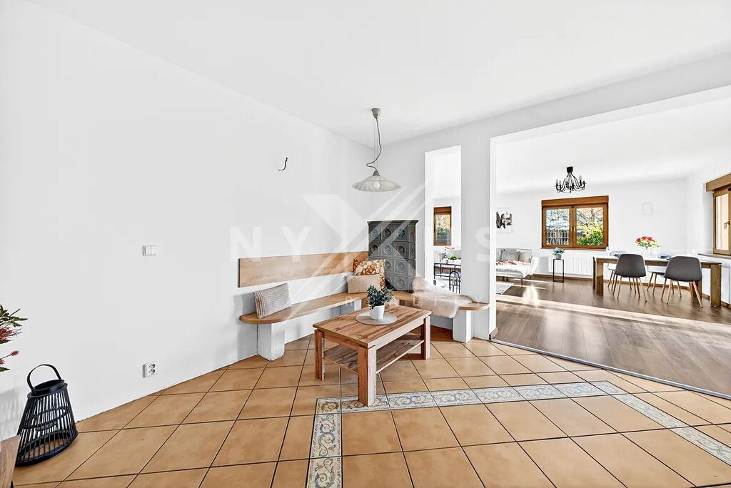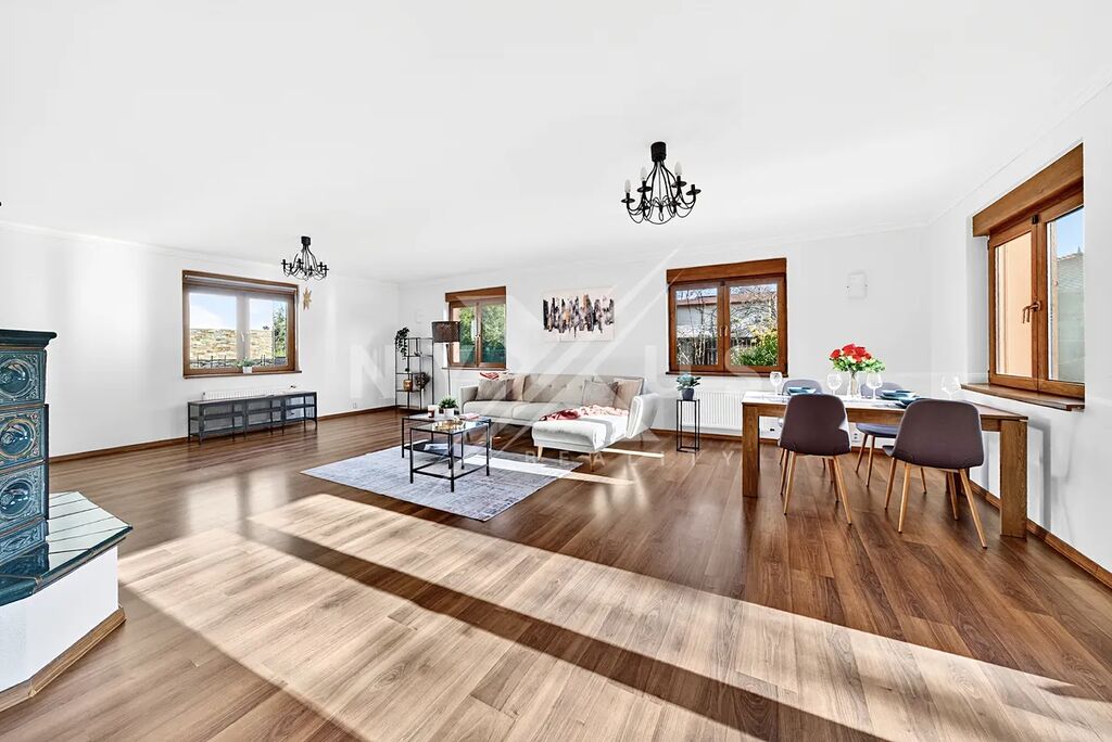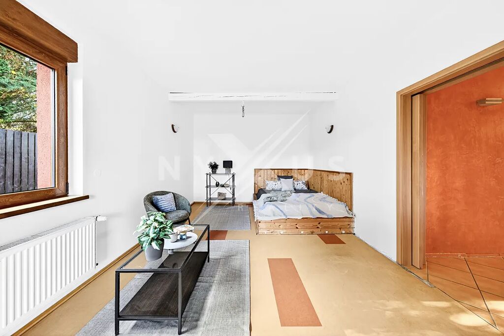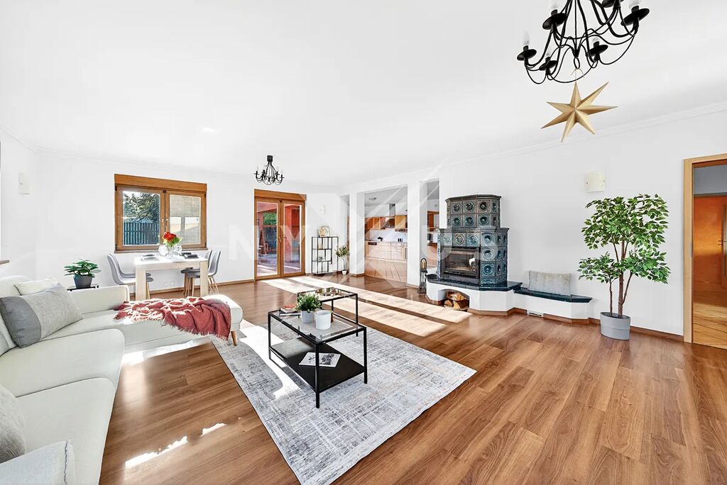 - Velkorysý obývací pokoj s přímým vstupem na zahradu – ideální pro rodinný život i společenské akce