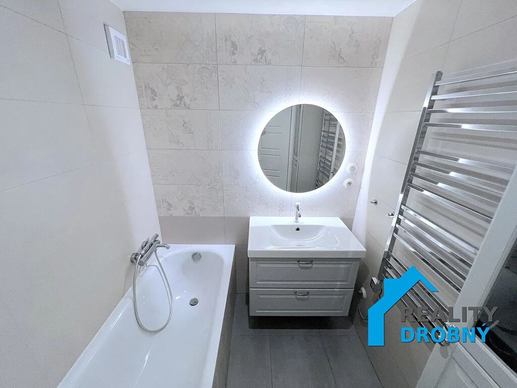 V kuchyni je kuchyňská linka na míru s obklady, sklokeramická varná deska, digestoř, vestavěná myčka, pračka a sušička, pečicí trouba. V koupelně je vana, umyvadlo se skříňkou, podsvícené zrcadlo, topný žebřík, podhledy, obklady a dlažba. Podlahy - plovoucí, koberec a dlažba. K dispozici je sklepní kóje. Vytápění a ohřev vody - dálkové.