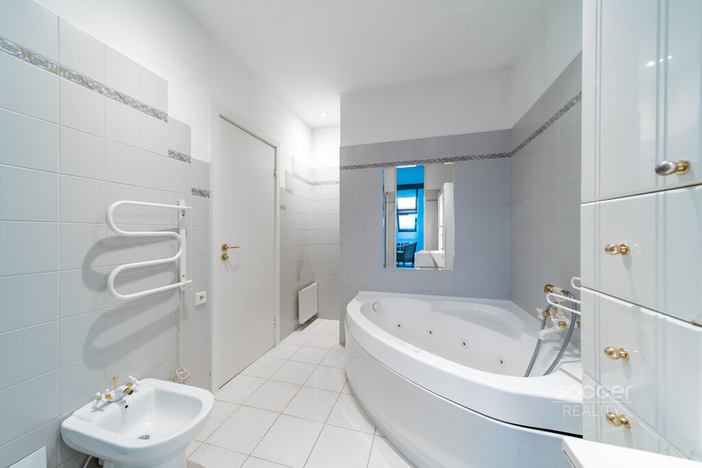 Koupelna je vybavena vanou, sprchou a bidetem. WC je oddělené. Dispozice bytu nabízí příjemnou orientaci místností, která podporuje komfortní každodenní fungování. Byt se dá snadno využít i na spolubydlení nebo jako kancelář či ateliér. V celém bytě je navíc instalována klimatizace.