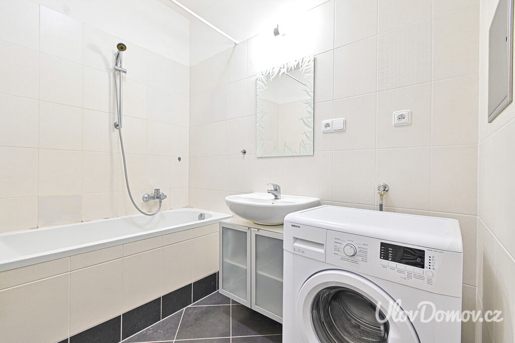 Byt se nabízí částečně vybavený. Disponuje kuchyňskou linkou se spotřebiči (elektrická trouba, varná deska, digestoř, mikrovlnná trouba). Součástí vybavení je také pračka, jídelní stůl, židle a postel.