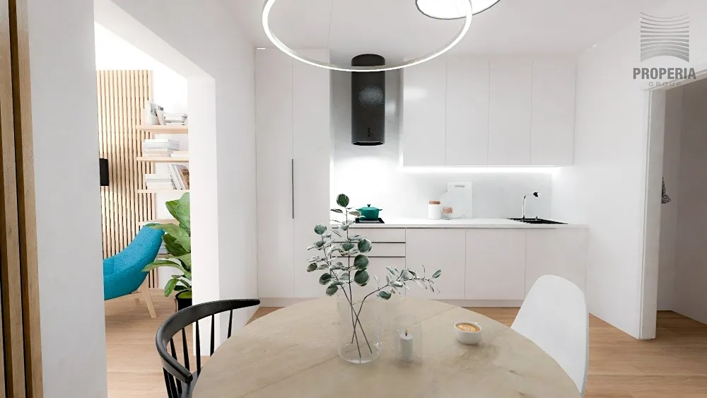 Součástí bytu není kuchyňská linka, kterou si každý může vybrat dle svého vkusu. Finální omítky jsou sádrová stěrka s malbou do bíla, zásuvky a vypínače TANGO. Světla nejsou dodávkou.