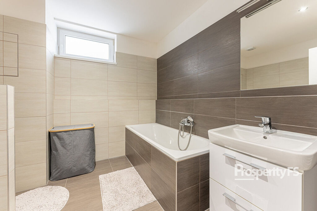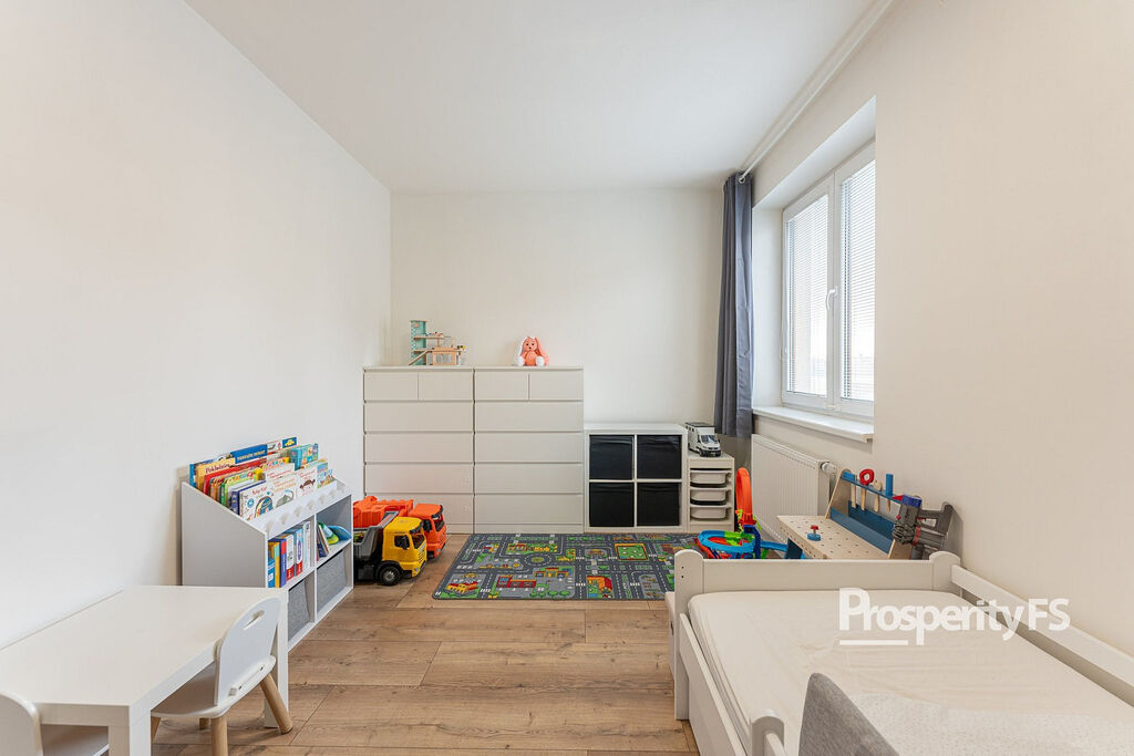 Ložnice a dětský pokoj nabízí dostatek prostoru, klidu a soukromí pro všechny členy domácnosti. Praktická koupelna je vybavena vanou i prostorem pro pračku – vše promyšleno pro pohodlné denní fungování.