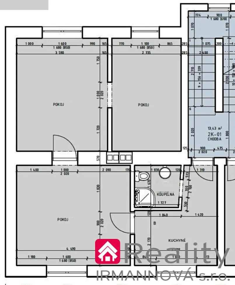 K pronájmu nabízíme byt 3+1 o velikosti 61,5 m2, který se nachází ve 2. nadzemním podlaží.