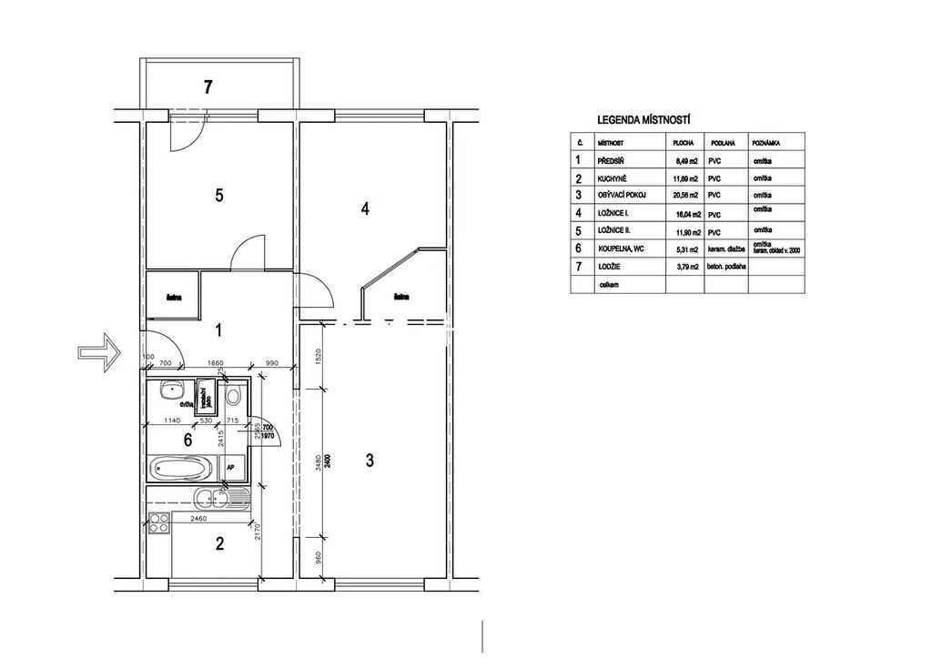 K bytu je sklepní kóje 2 m2.