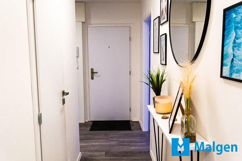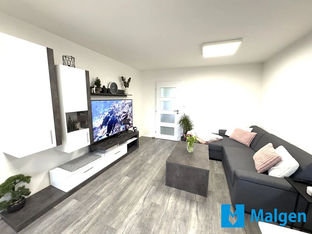 Byt zaujme moderním standardem — vinylové podlahy, podlahové topení v koupelně i na WC, koupelna a toaleta jsou navíc prakticky oddělené. Kuchyňská linka je vyrobena na míru a všechny spotřebiče včetně americké lednice v bytě zůstávají. Dispozice je velmi praktická: obývací pokoj plynule navazuje na kuchyňský kout, dva samostatné neprůchozí pokoje jsou aktuálně využívány jako ložnice a pracovna. K bytu náleží také prostorná zasklená lodžie.