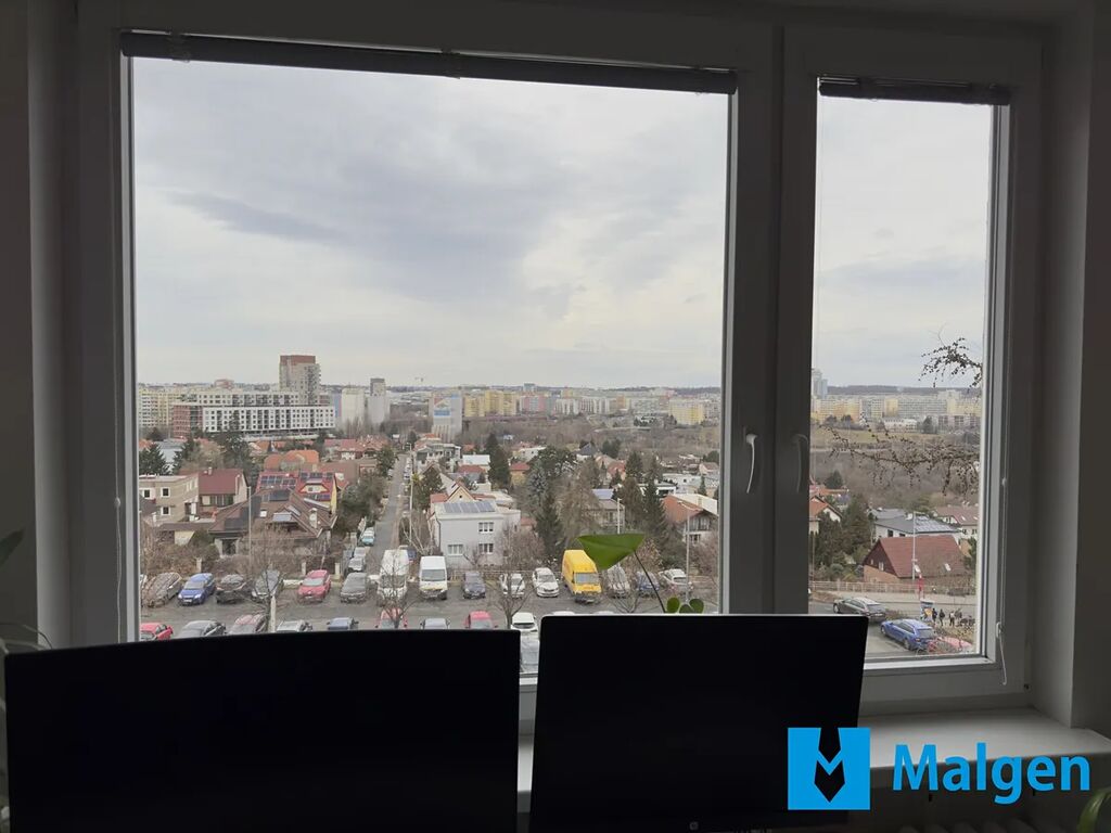 Byt se pyšní výhledem na obě strany: z jedné je otevřený prostor bez protějších budov. Z druhé strany klidné a zelené prostředí vnitrobloku s dětským hřištěm.