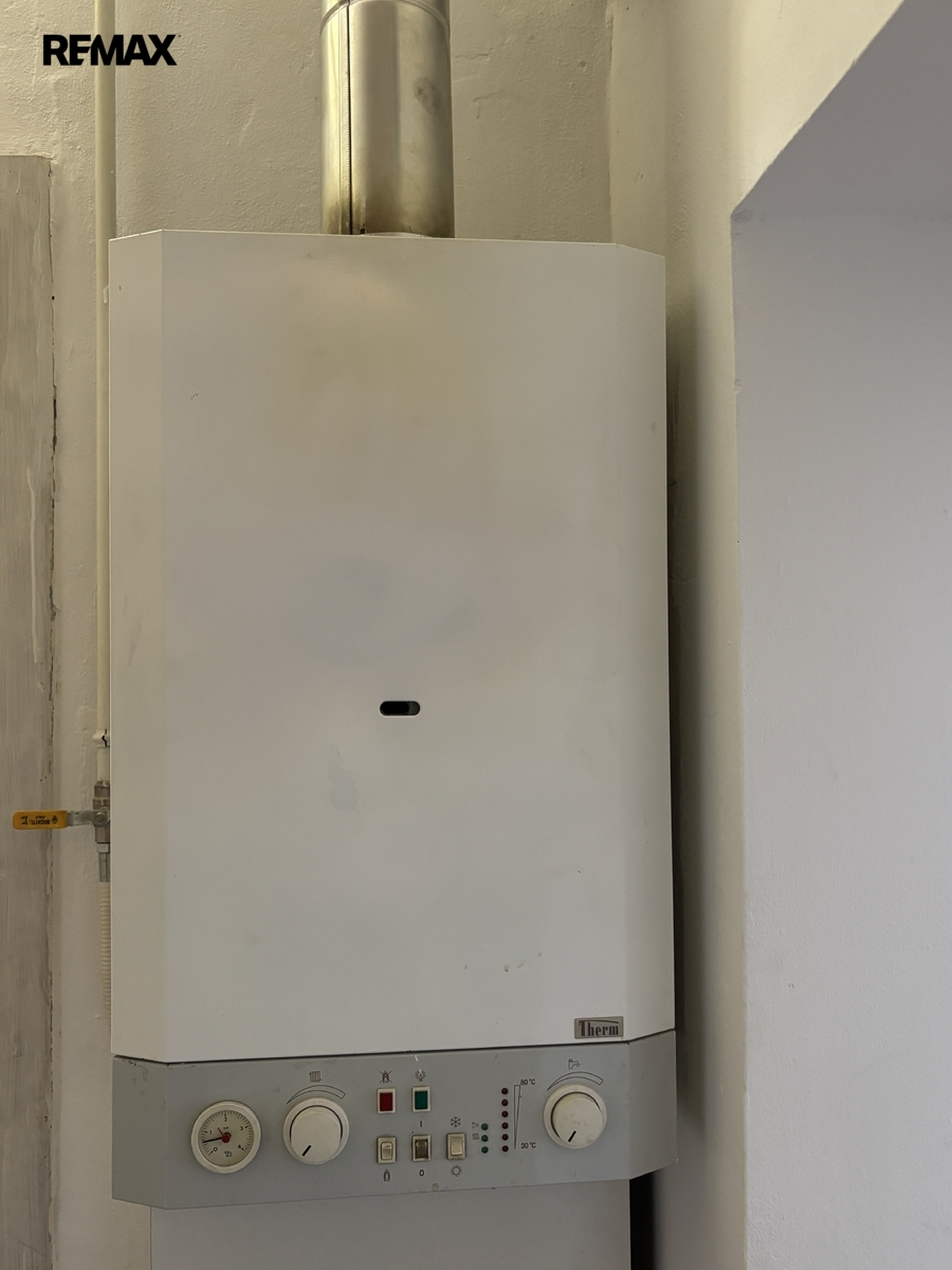 Vytápění bytu samostatným novým plynovým kotlem s radiátory, Zánovní koupelna a kuchyně včetně rozvodů vody a elektřiny.