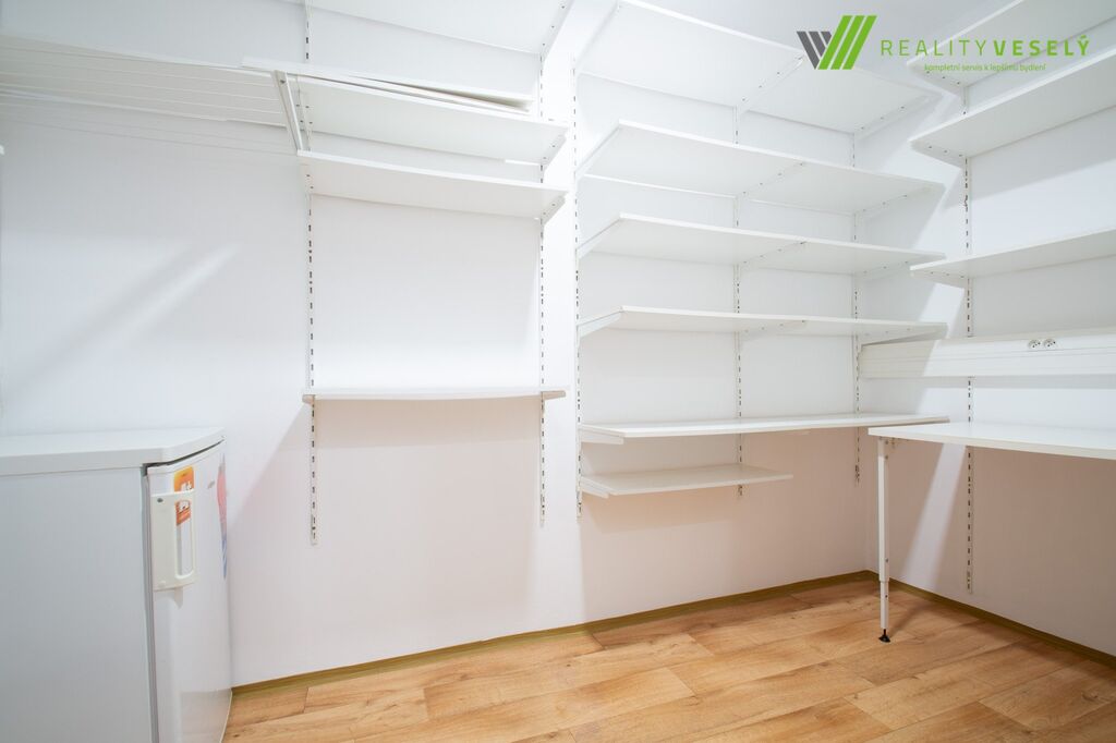 Byt prošel kompletní rekonstrukcí – nové podlahy, moderní kuchyňská linka, osvětlení, koupelna i praktické úložné prostory. Součástí je i velmi prostorná šatna s kvalitním policovým systémem. Obývací pokoj i kuchyň působí světlým a čistým dojmem, stejně jako zbytek bytu.