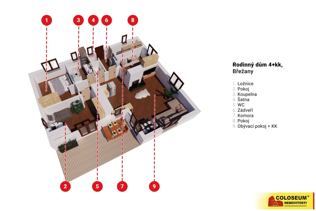 Exkluzivně Vám nabízíme ke koupi moderní rodinný dům 4+kk v obci Břežany u Znojma. Jedná se o čtyři roky starý bungalov – kvalitní dřevostavbu, která nabízí nízké náklady na provoz, příjemné vnitřní klima a velmi praktické dispoziční řešení.