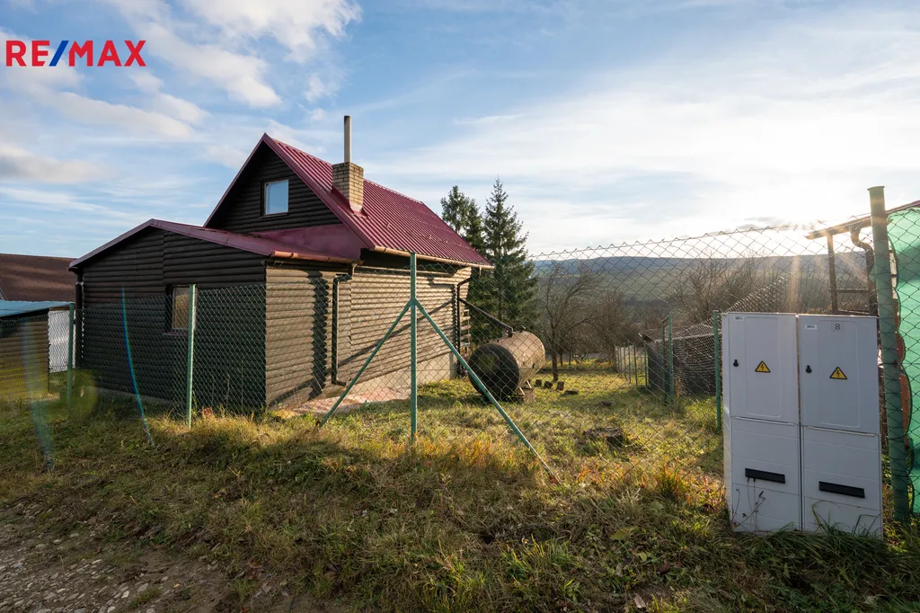 Celková plocha pozemku včetně zastavěné je 599m². Příjezd k chatě je zajištěn po obecní cestě.