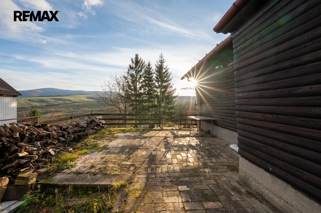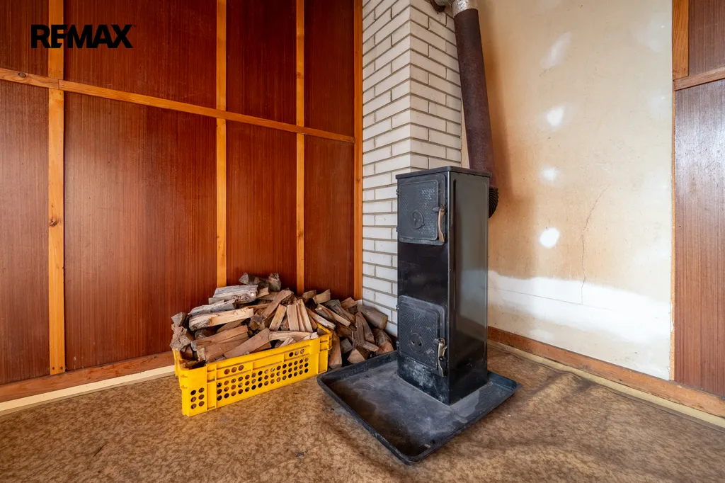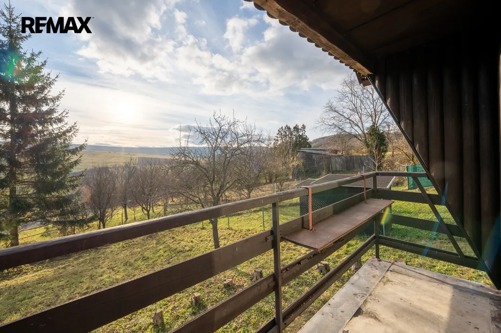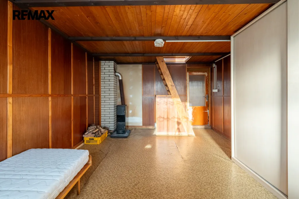Z prostoru kuchyňky lze vejít do obytné místnosti kterou vede komín a jsou zde kamna na tuhá paliva, která vytápí objekt. Z této místnosti můžete vyjít dveřmi na balkon, který naskytne krásné výhledy do okolí, na přírodu a na obec Strání. Orientace je J-JZ.