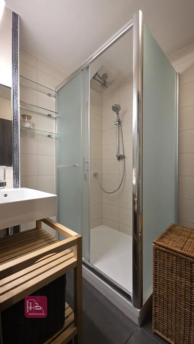 V celém bytě jsou nové rozvody elektřiny, nové radiátory, nově vybudovaná koupelna se sprchovým koutem, umyvadlem a otopným žebříkem, nová toaleta s umyvadlem, sprškou a vývodem na pračku a sušičku, nové omítky v celém bytě, nové širší dveře s obložkami 90 cm. Na podlahách v pokojích, kuchyni a chodbě vinyl. V koupelně a na toaletě je položena dlažba. Celý byt je bezbariérový a bez prahů.