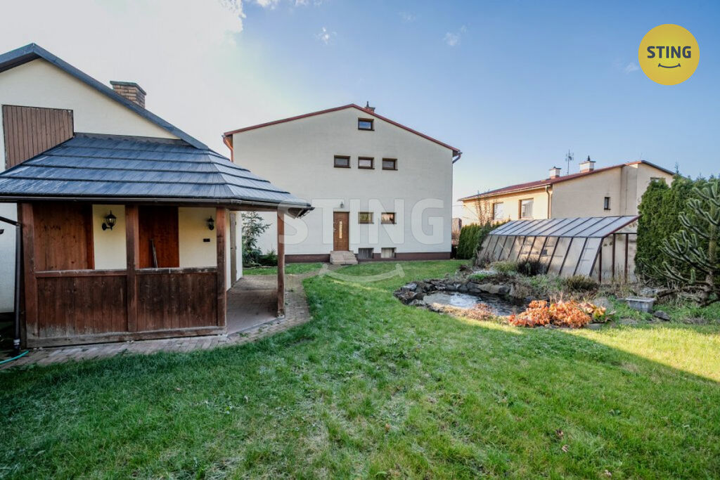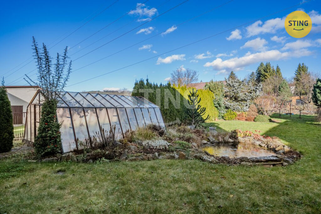 K domu náleží krásně upravená zahrada se soukromím, zastřešeným altánem pro posezení, skleníkem, okrasnými keři a jezírkem, které dotváří příjemnou atmosféru celého místa.