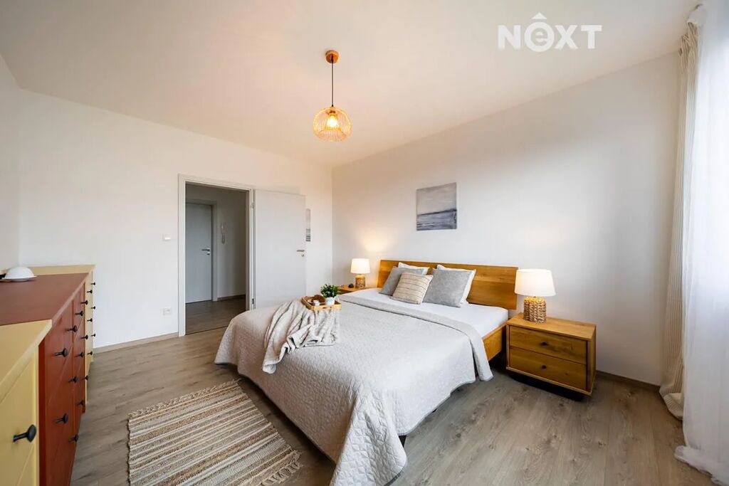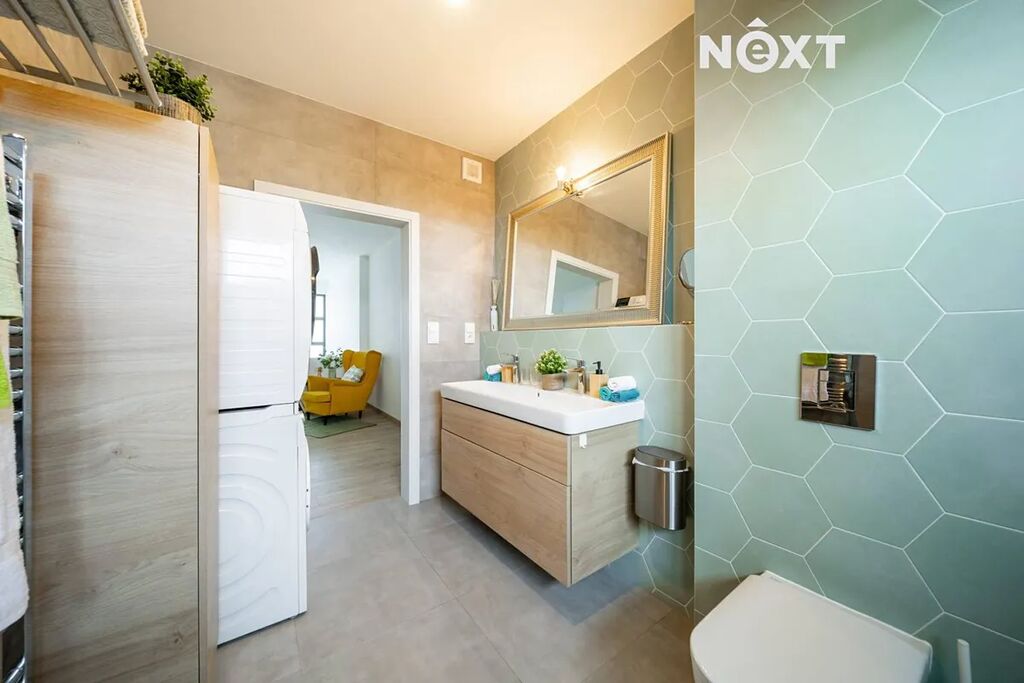 Elegantní prosklené schodiště vede do prvního patra, kde se nachází soukromá část domu. Hlavní ložnice o 16,09 m² působí vzdušně a nabízí klid s příjemným výhledem. Druhý pokoj o 13,95 m² je ideální jako dětský pokoj nebo pracovna. Třetí pokoj o velikosti 12,6 m² může sloužit jako druhý dětský pokoj, hobby místnost nebo pracovna pro dva. Nechybí ani čtvrtá místnost o 9,89 m², vhodná jako šatna, menší pracovna nebo pokoj pro hosty. Koupelna v patře má 7,59 m², je vybavena vanou i sprchovým koutem a díky oknu působí příjemně, svěže a umožňuje přirozené větrání.