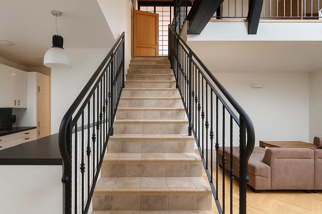 Samotný byt se rozprostírá ve dvou podlažích – ve 4. a 5. nadzemním podlaží domu s výtahem. Díky svému umístění nabízí naprostý klid, dostatek denního světla a zároveň nádherný výhled na panorama hlavního města z terasy.
