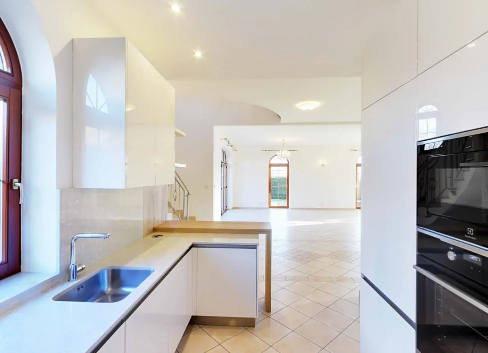 Moderní dvojpodlažní vila o dispozici 5+1 nabízí opravdu vysoce nadstandartní bydlení. Je tvořena kompletně vybavenou kuchyní, obývacího pokojem s krbem, 4 ložnicemi a 3 koupelny a 3 toalety z toho dvě samostatné. Pro zajištěnímaximálního komfortu je vila vybavená podlahovým topením a klimatizací.
