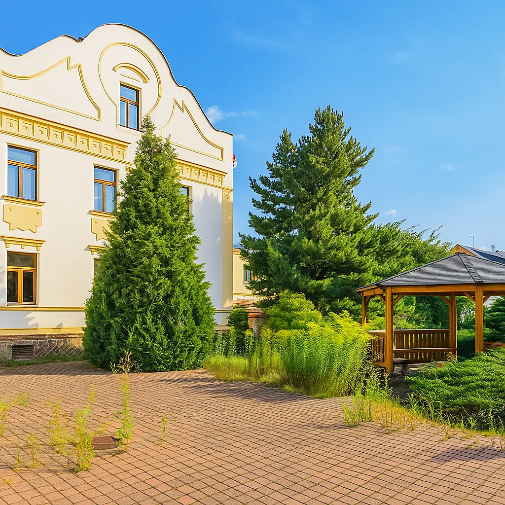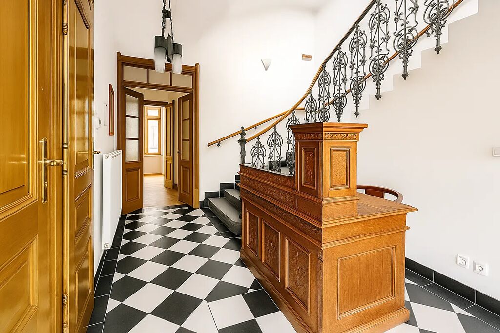 Vila má čtyři podlaží a celkovou dispozici 12+kk, přičemž každé patro nabízí 3–4 prostorné místnosti. Díky své velkorysé ploše a promyšlenému uspořádání je ideální pro rodinné bydlení, vícegenerační využití nebo jako sídlo firmy, případně reprezentativní rezidence pro firemní či diplomatické účely. Zůstává také možnost zachovat zdravotnický charakter nemovitosti.