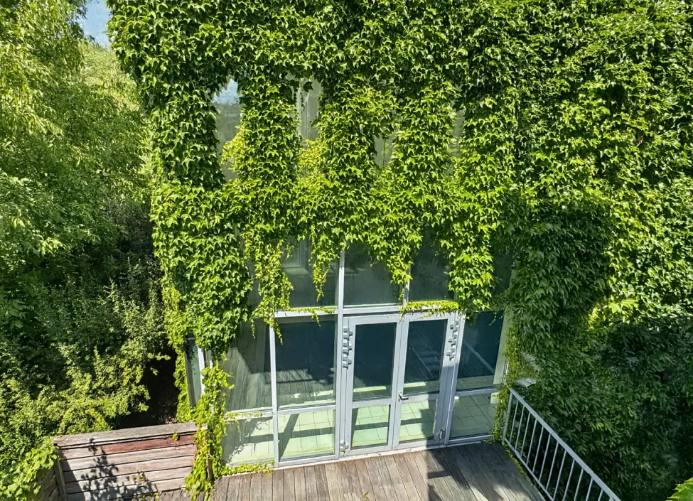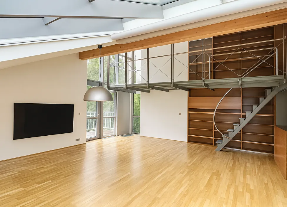 Čtvrté – nejvyšší – patro funguje jako samostatné studio s vlastním vstupem na terasu s panoramatickým výhledem na Prahu. Disponuje ložnicí, kuchyňským koutem, šatnou i koupelnou a je ideální pro dvougenerační bydlení nebo zázemí pro hosty. Prostor je skvěle osvětlen ateliérovými okny a mohl by inspirovat pro tvorbu uměleckých děj i dalších projektů.