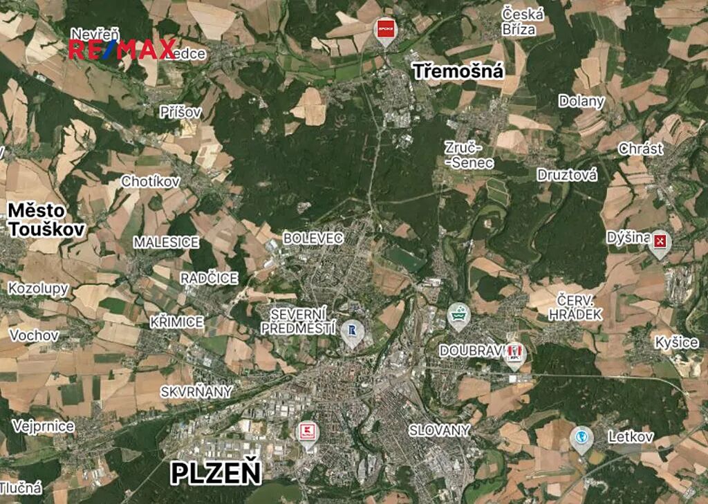 Pozemek je v ideální dojezdové vzdálenosti cca 15 minut jízdy autem z centra Plzně a na D5 jste za 20 minut.