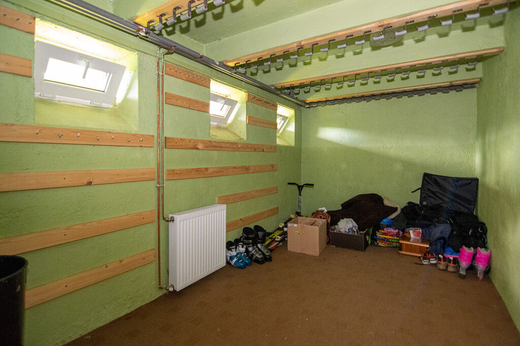 V přízemí domu se nachází skladovací prostory, technická místnost, toaleta s umyvadlem a prádelna.