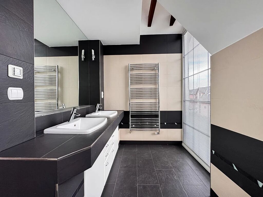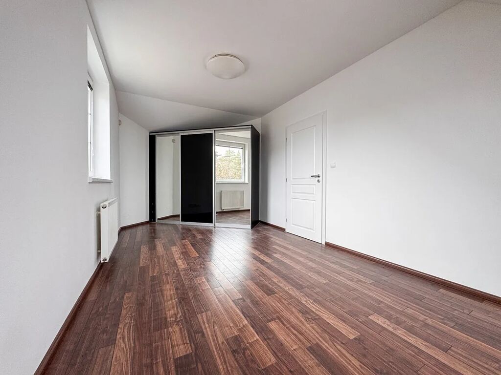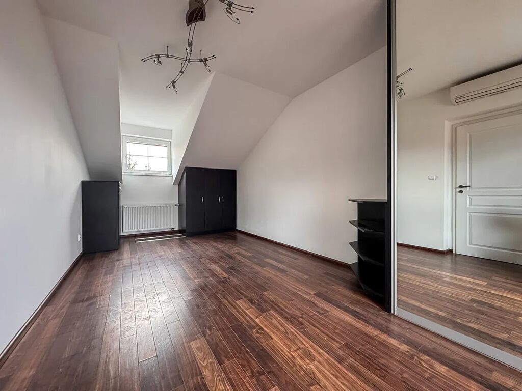 V patře se nachází tři samostatné pokoje o podlahových plochách přibližně 19 m², 18 m² a 15 m². Jeden z pokojů je vybaven klimatizační jednotkou a má vstup na balkon s výhledem do ulice a okolí. Patro doplňuje koupelna s vanou a dvěma umyvadly a druhé WC, což výrazně zvyšuje komfort při každodenním provozu rodiny.