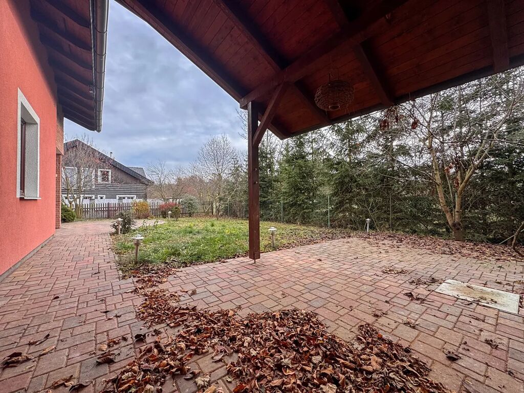 Velkou výhodou domu je podsklepení, které nabízí další využitelný prostor například pro skladování, domácí posilovnu, hobby či hernu. Do garáže je možné vstoupit jak z domu, tak přímo ze zahrady. Pozemek je rovinatý, oplocený a díky umístění na konci ulice poskytuje nadstandardní soukromí. Součástí zahrady je také přístřešek vhodný pro uskladnění zahradního vybavení či sportovních potřeb.