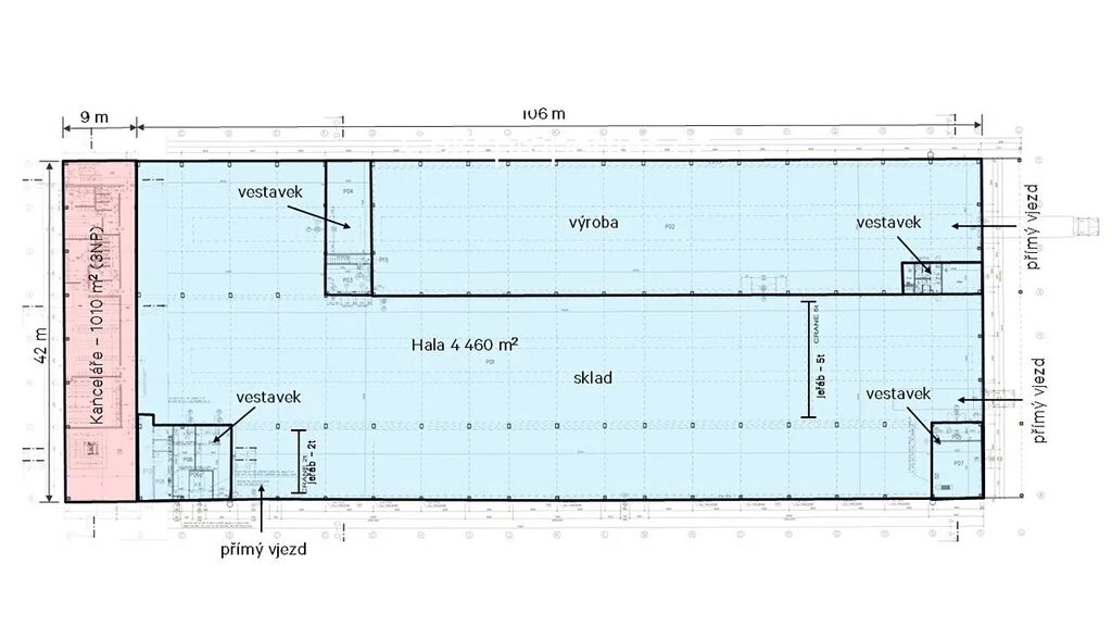 • Jedná se o existující halu s expanzním pozemkem na další možnost rozšíření.