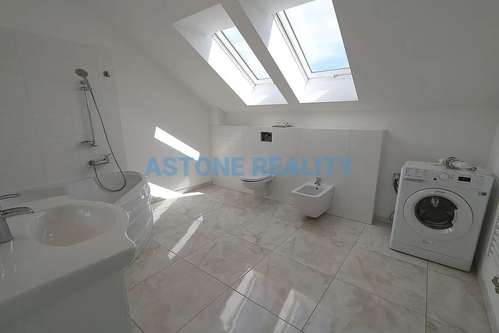 Nabízíme Vám k pronájmu krásný, dvoupodlažní rodinný dům 7+kk se třemi balkony a dvougaráží v obci Trnová, pouze několik kilometrů od Prahy. Prostorný dům s obytnou plochou 370 m2 se nachází na zcela rovném, oploceném pozemku o celkové ploše 1.674 m2. Dispoziční řešení: v přízemí je vstupní hala, kuchyně s velkým obývacím pokojem, koupelna s masážním sprchovým koutem a toaletou, ložnice a technická místnost s kotlem a vstup přímo do garáže, v prvním patře se nachází čtyři samostatné ložnice se dvěma koupelnami, jedna s rohovou vanou, druhá se sprchovým koutem, pracovna, dvě úložné komory a šatna. Plovoucí podlahy v kombinaci s velkoformátovou dlažbou, eurookna, bezpečnostní vstupní dveře. Dům je zabezpečen alarmem. Výborná dopravní dostupnost, busem 30 min na metro B Smíchov, nebo vozem po dálnici 20 min. V bezprostřední vzdálenosti je cyklostezka, restaurace, jezdecké centrum. Kompletní občanská vybavenost se nachází v nedalekém Jílovišti nebo v Měchenicích. V případě zájmu o prohlídku nás prosím kontaktujte, k dispozici od 1.12.